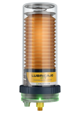 O LUBRICAJO V é tecnicamente impressionante graças ao seu acionamento eletromecânico com uma pressão de funcionamento até 25 bar (362 psi), o que permite alimentar vários pontos de lubrificação através de um distribuidor.